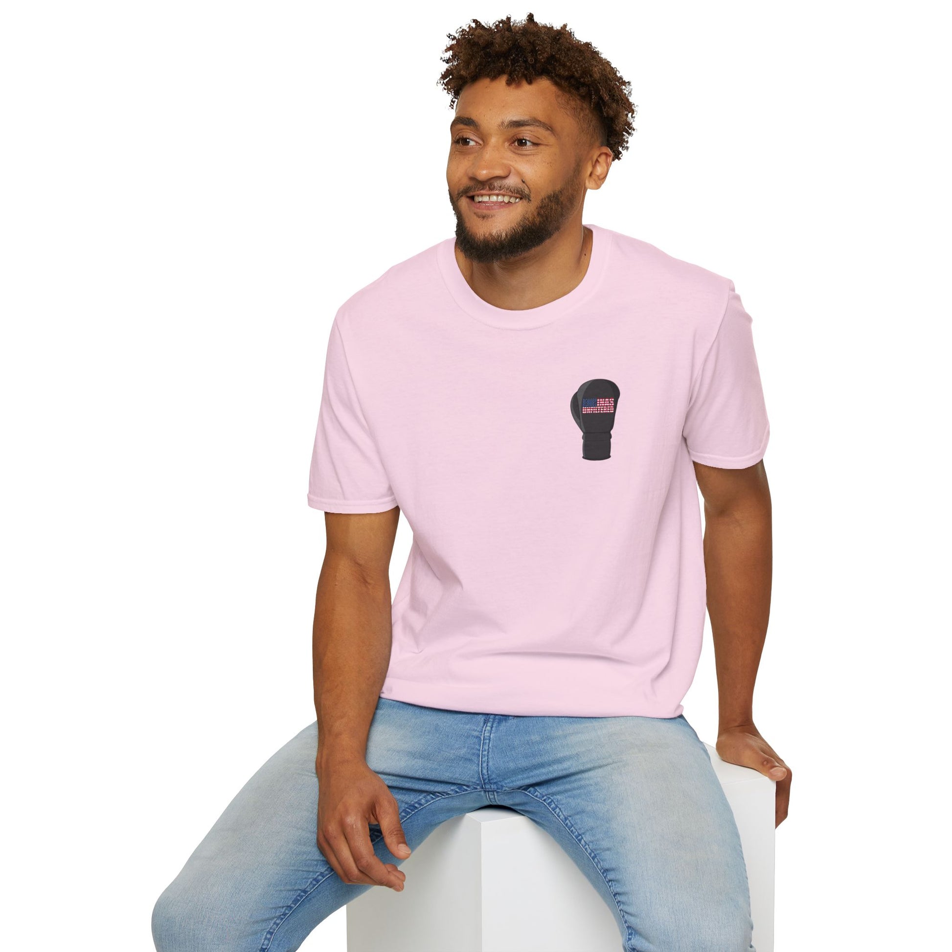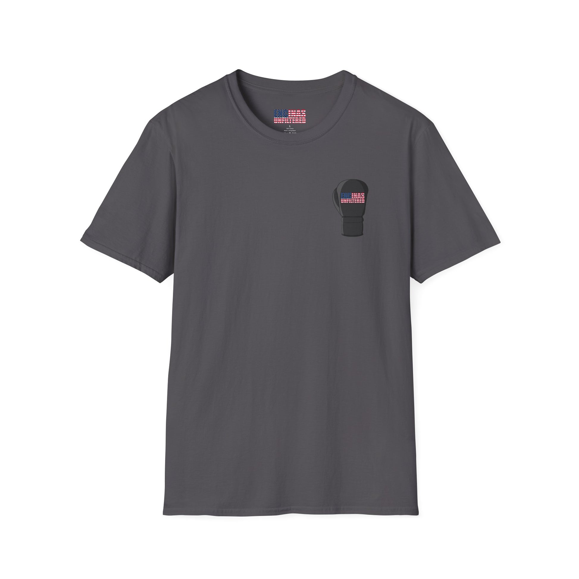 A lightweight, breathable tee printed with a bold boxing-glove motif that carries a quietly patriotic edge. The front chest features a small glove emblem; the back shows a larger glove filled with an American-flag dot pattern. Wear it to training, to the gym, or on weekends when you want a sporty, slightly rebellious look. The soft ring-spun cotton feels smooth against the skin and the tubular knit keeps the silhouette clean. Subtle details — ribbed collar, shoulder tape, and a tear-away label — keep this shirt comfortable during long workouts or all-day wear. Ethically sourced cotton and certified safety standards make it an easy choice for people who care about quality and responsible manufacturing.